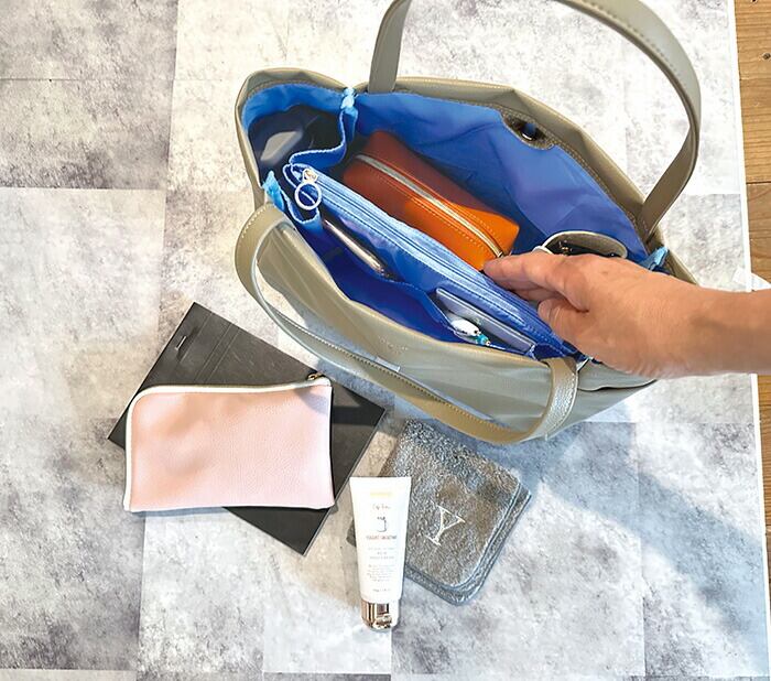 ・バッグの中で散らかってしまいがちなアイテムを整理整頓。たっぷり荷物が入り、荷物の仕分けがしっかりできます。