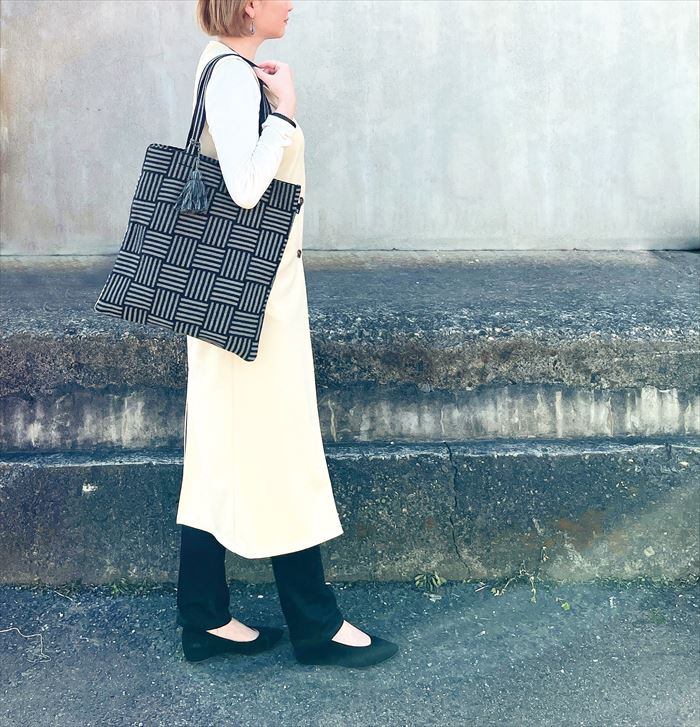 ・持ち手が長めで肩掛けしやすい。カラダにフィットしやすい形状。使う楽しさを兼ね備えた気分をあげてくれるトートです。