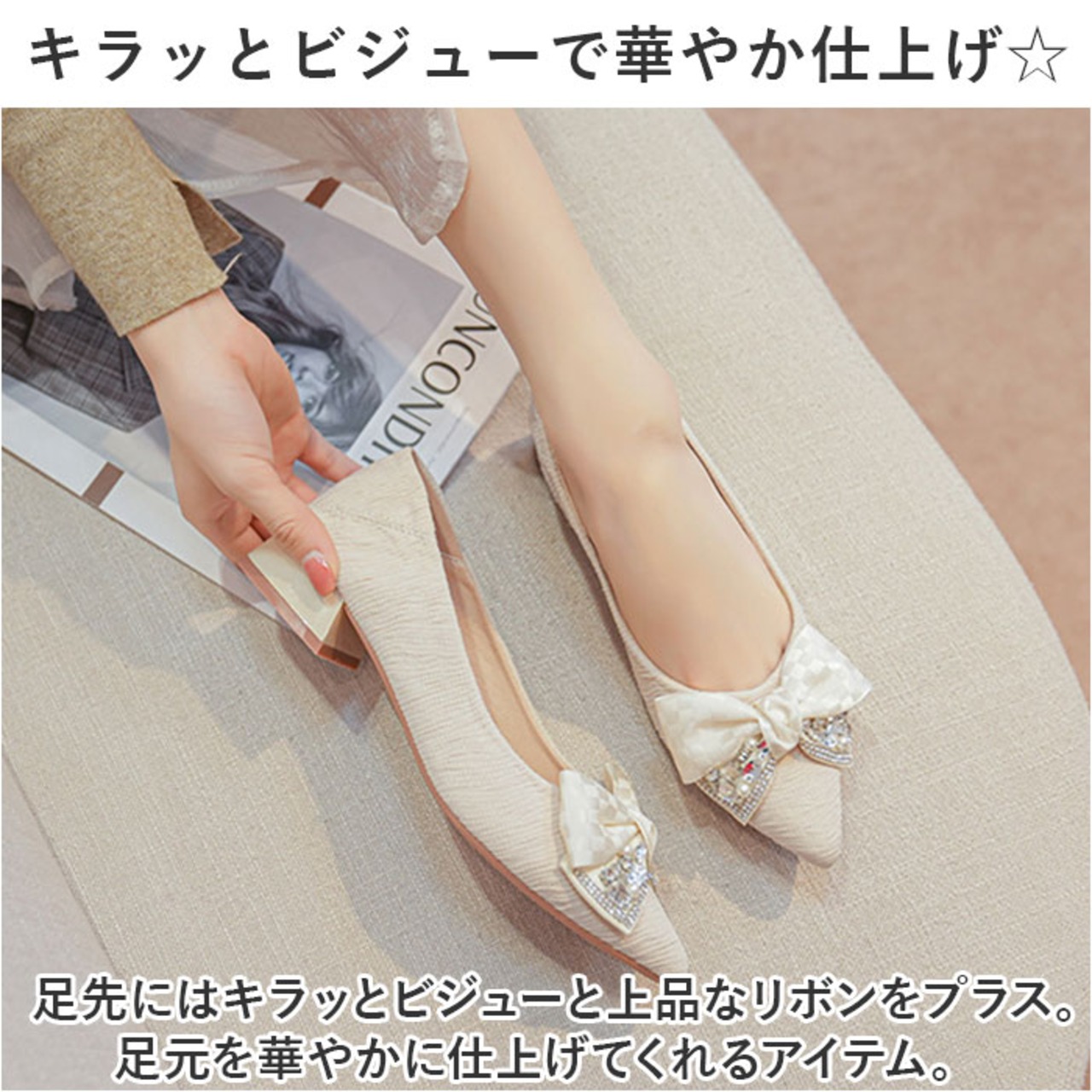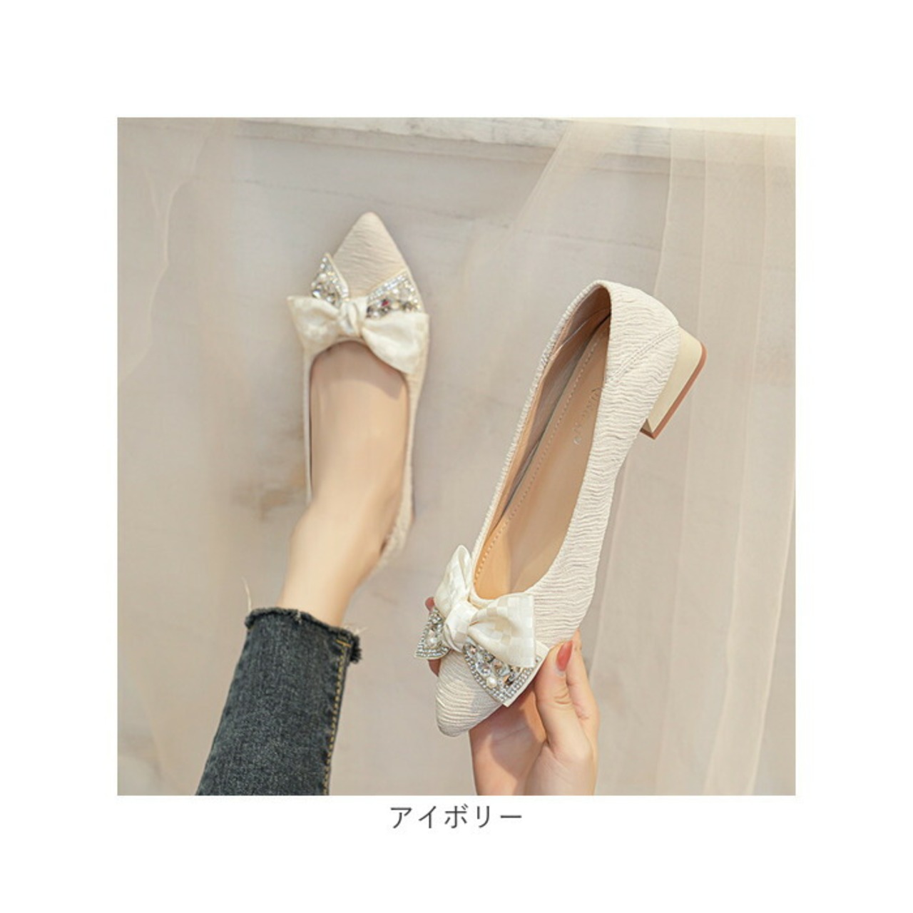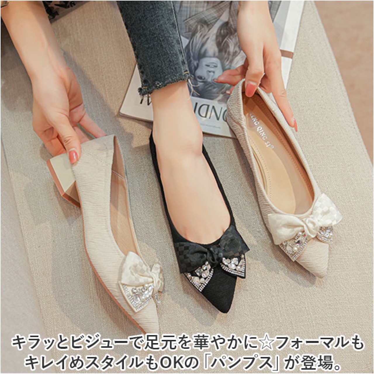 ビジュー パンプス リボン 通販 ローヒールパンプス ポインテッドパンプス 靴 シューズ レディース 歩きやすい かわいい ヒール3cm おしゃれ お洒落 ゴム底 レディースシューズ 通勤 オフィス フォーマル ビジネス レディース靴 婦人靴 二次会