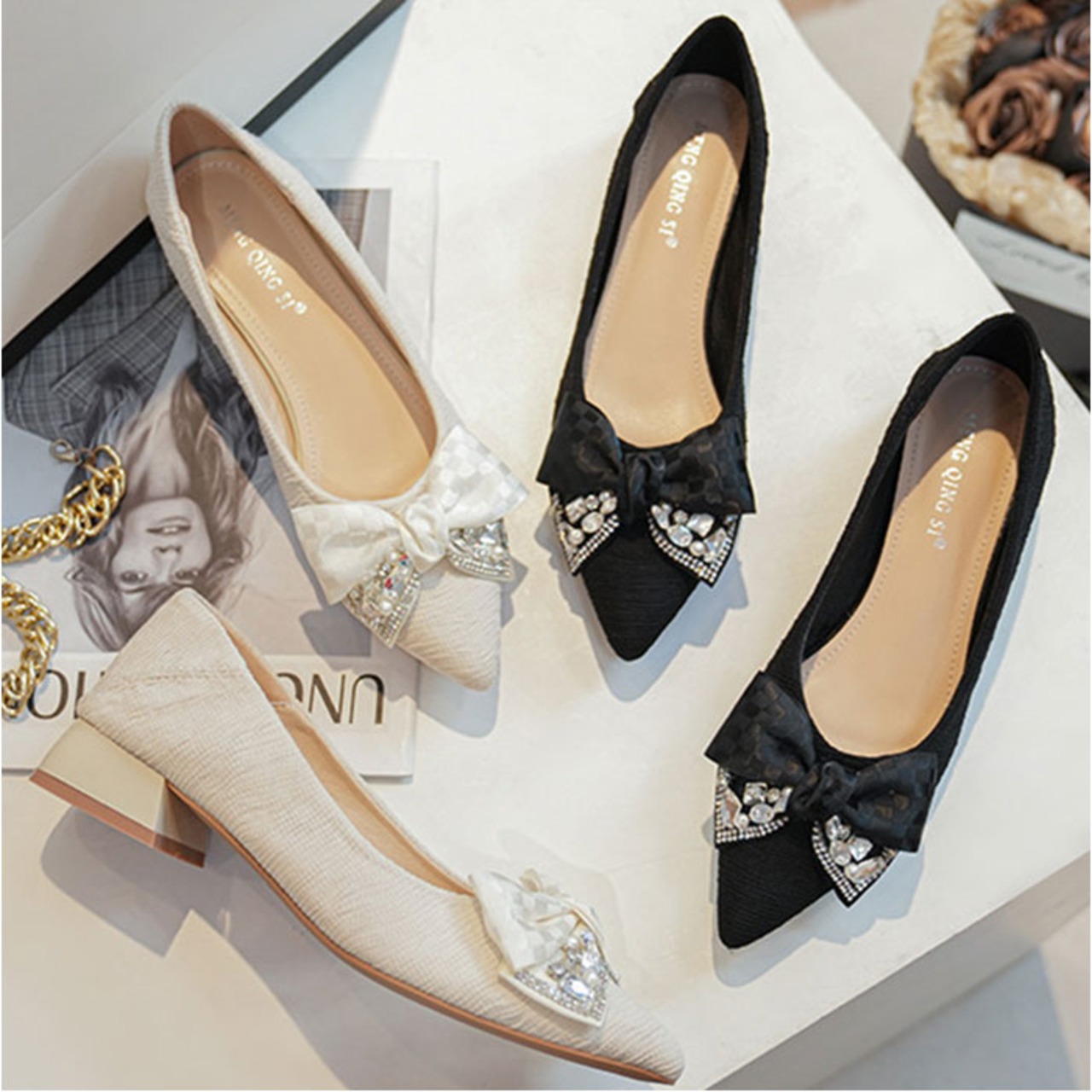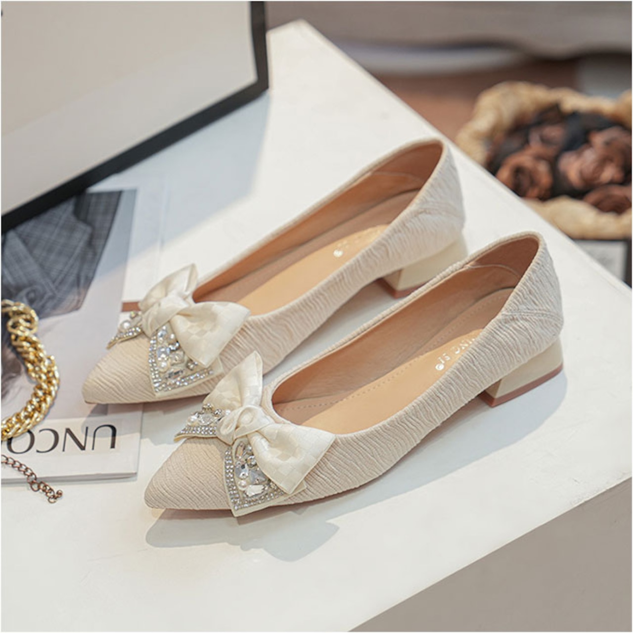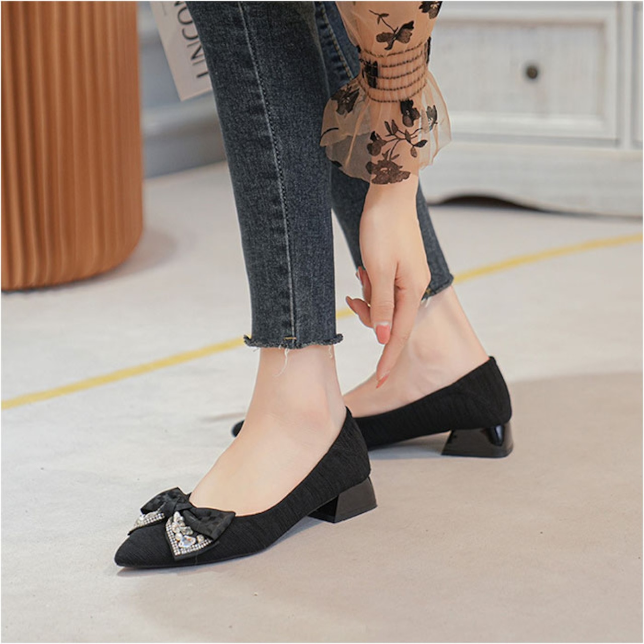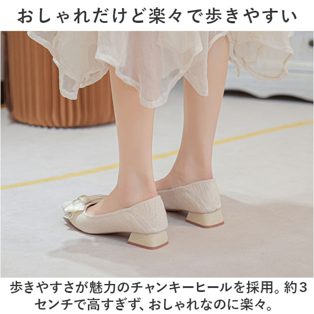 ビジュー パンプス リボン 通販 ローヒールパンプス ポインテッドパンプス 靴 シューズ レディース 歩きやすい かわいい ヒール3cm おしゃれ お洒落 ゴム底 レディースシューズ 通勤 オフィス フォーマル ビジネス レディース靴 婦人靴 二次会