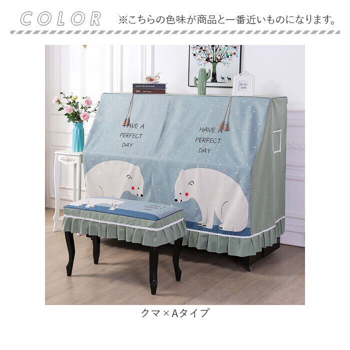 ・サラッと肌触りのよい杢調ポリエステル生地いっぱいに、心がほっこり温まるアニマルイラストをプリント!中央のスリット部分を左右に開けば、カバーを外さずにピアノ演奏が可能。