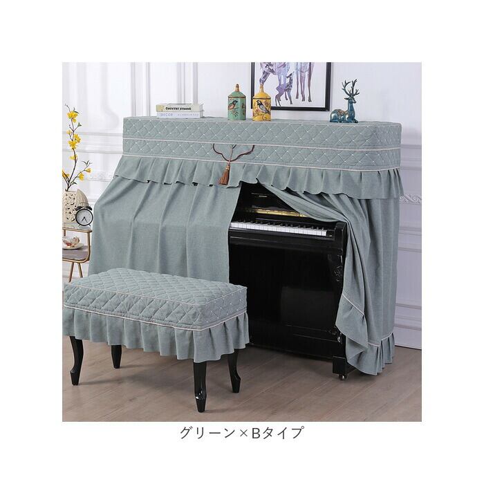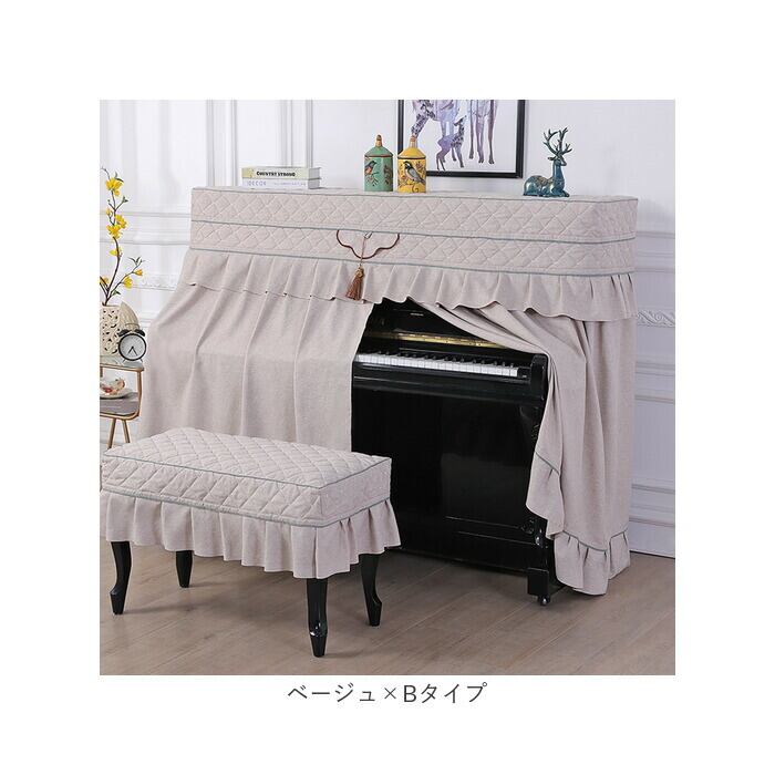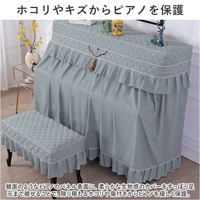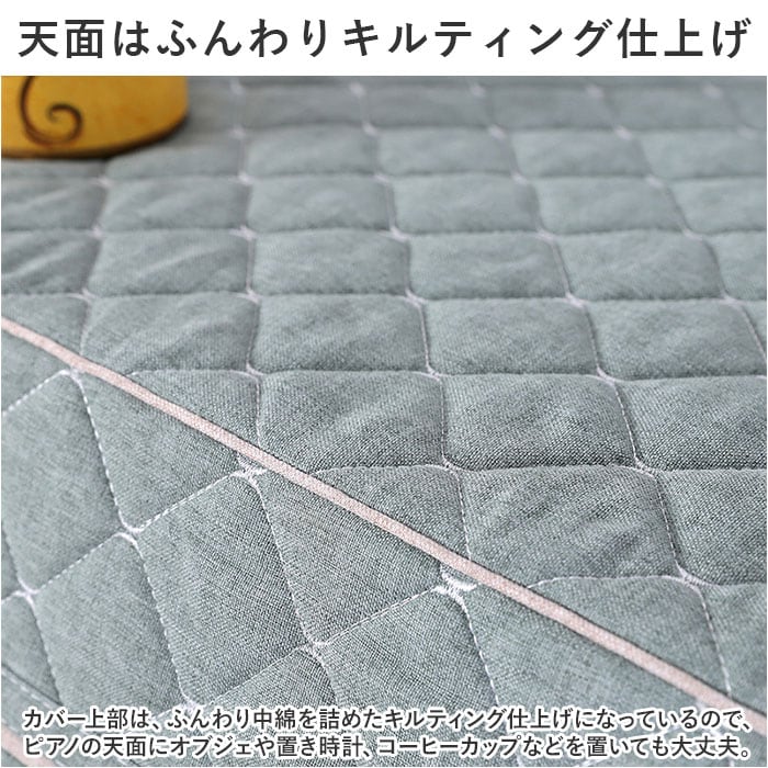 ・カバー上部は、ふんわり中綿を詰めたキルティング仕上げになっているので、ピアノの天面にオブジェや置き時計、コーヒーカップなどを置いても大丈夫。