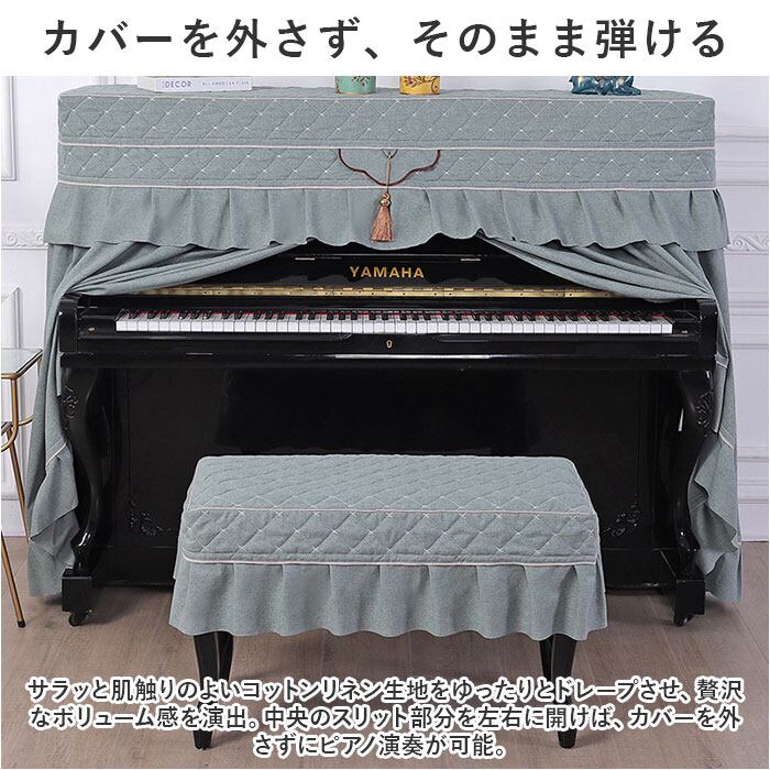 ・サラッと肌触りのよいコットンリネン生地をゆったりとドレープさせ、贅沢なボリューム感を演出。中央のスリット部分を左右に開けば、カバーを外さずにピアノ演奏が可能。