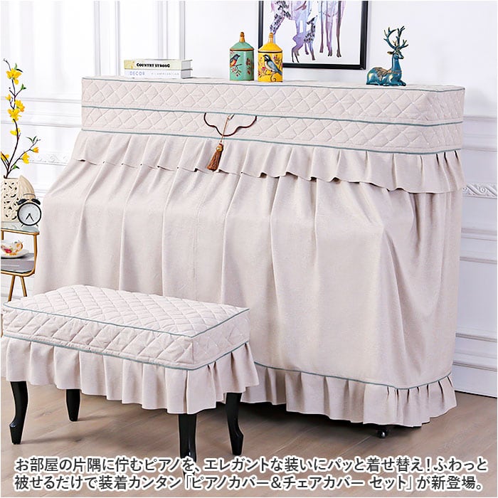 ・お部屋の片隅に佇むピアノを、エレガントな装いにパッと着せ替え!ふわっと被せるだけで装着カンタン「ピアノカバー&チェアカバー セット」が新登場。