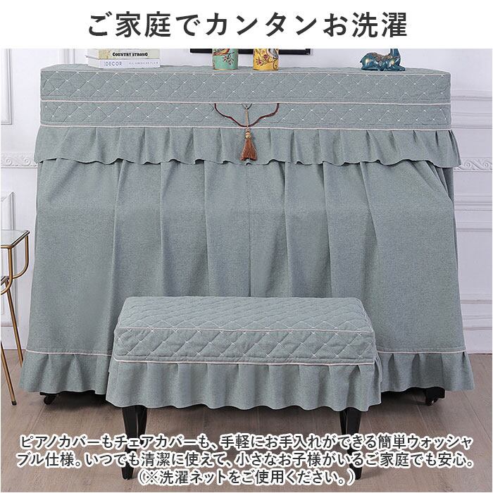 ・ピアノカバーもチェアカバーも、手軽にお手入れができる簡単ウォッシャブル仕様。いつでも清潔に使えて、小さなお子様がいるご家庭でも安心。(※洗濯ネットをご使用ください。)