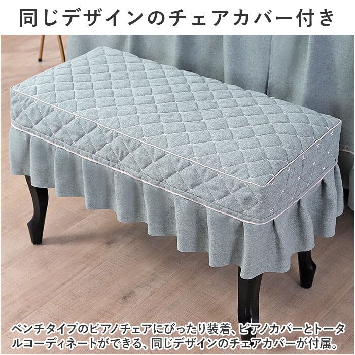 ・ベンチタイプのピアノチェアにぴったり装着、ピアノカバーとトータルコーディネートができる、同じデザインのチェアカバーが付属。