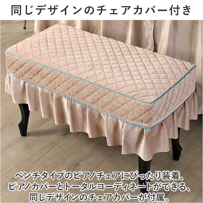 ・ベンチタイプのピアノチェアにぴったり装着、ピアノカバーとトータルコーディネートができる、同じデザインのチェアカバーが付属。