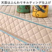 ・カバー上部は、ふんわり中綿を詰めたキルティング仕上げになっているので、ピアノの天面にオブジェや置き時計、コーヒーカップなどを置いても大丈夫。