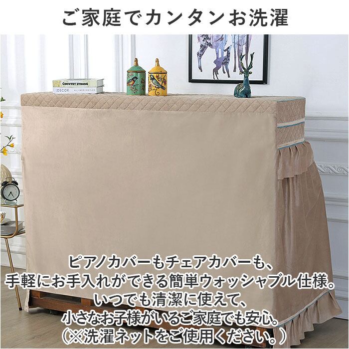 ・ピアノカバーもチェアカバーも、手軽にお手入れができる簡単ウォッシャブル仕様。いつでも清潔に使えて、小さなお子様がいるご家庭でも安心。(※洗濯ネットをご使用ください。)