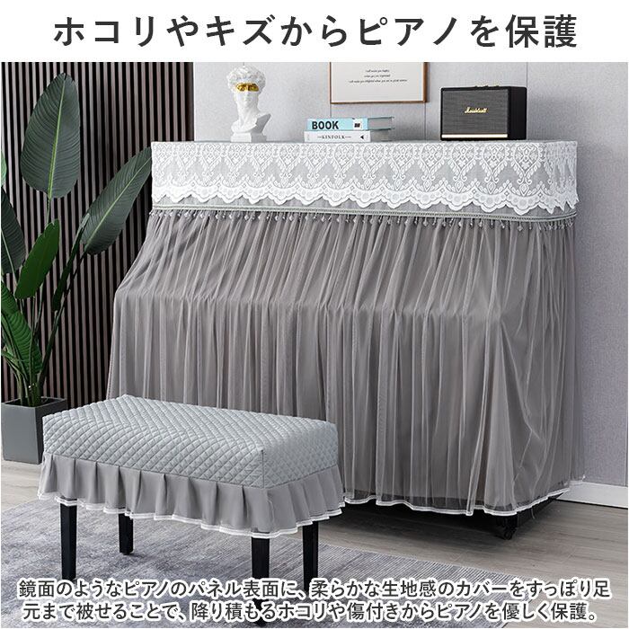・お部屋の片隅に佇むピアノを、エレガントな装いにパッと着せ替え!ふわっと被せるだけで装着カンタン「ピアノカバー&チェアカバー セット」が新登場。