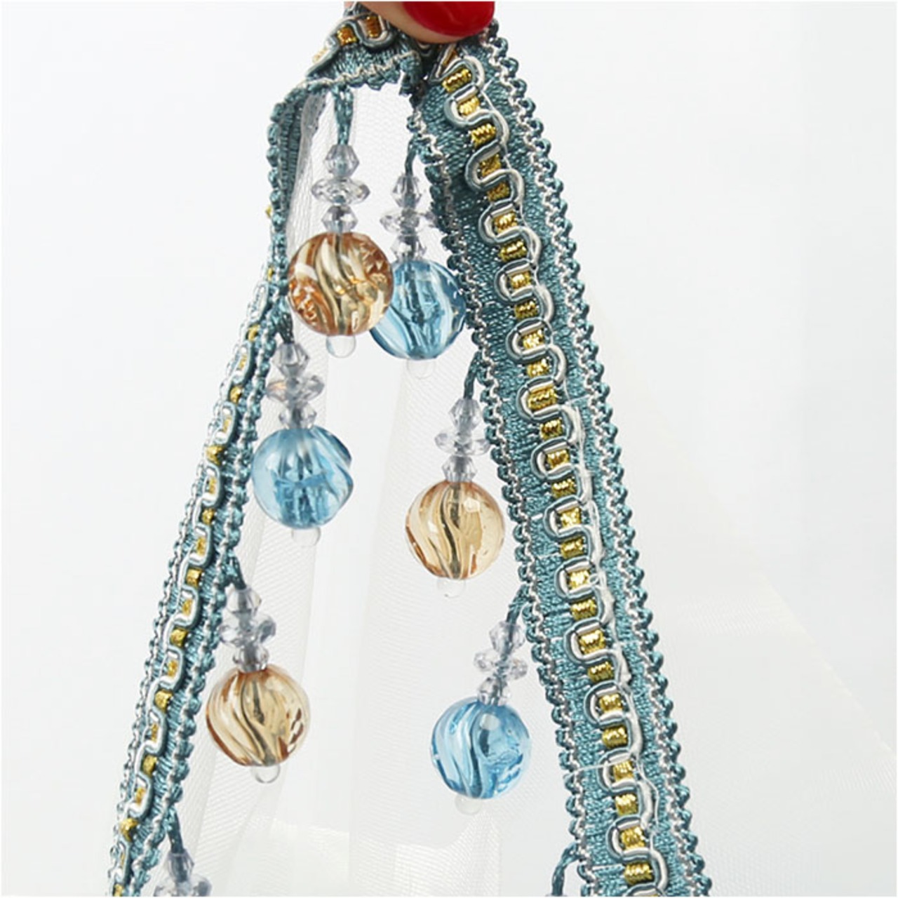 ・お部屋の雰囲気にすっきり調和する、柔らかく落ち着いた雰囲気のカラーバリエーション。レースの裾で密かに煌めく、アンティーク感のあるクリアビーズが印象的なアクセント。