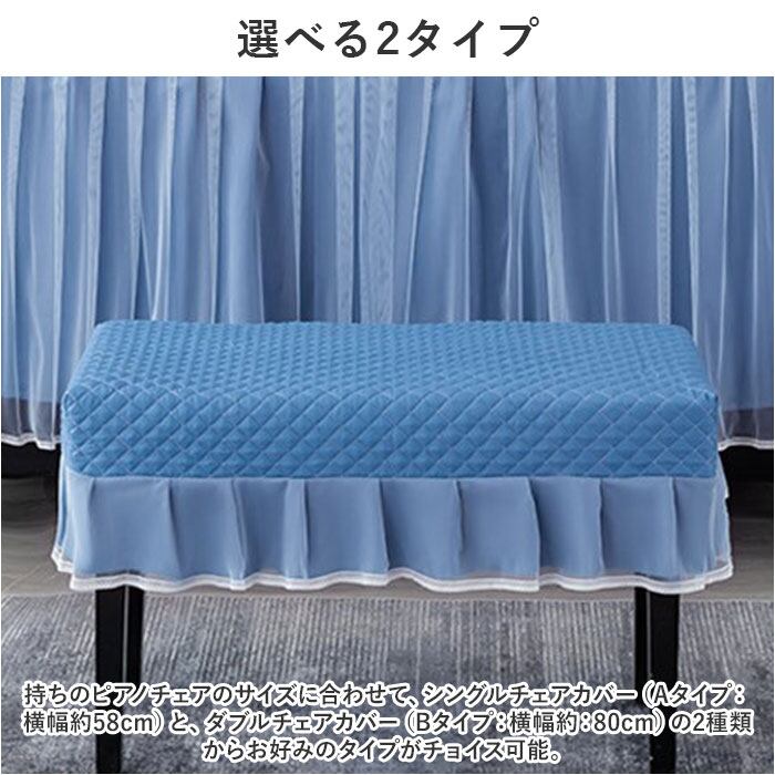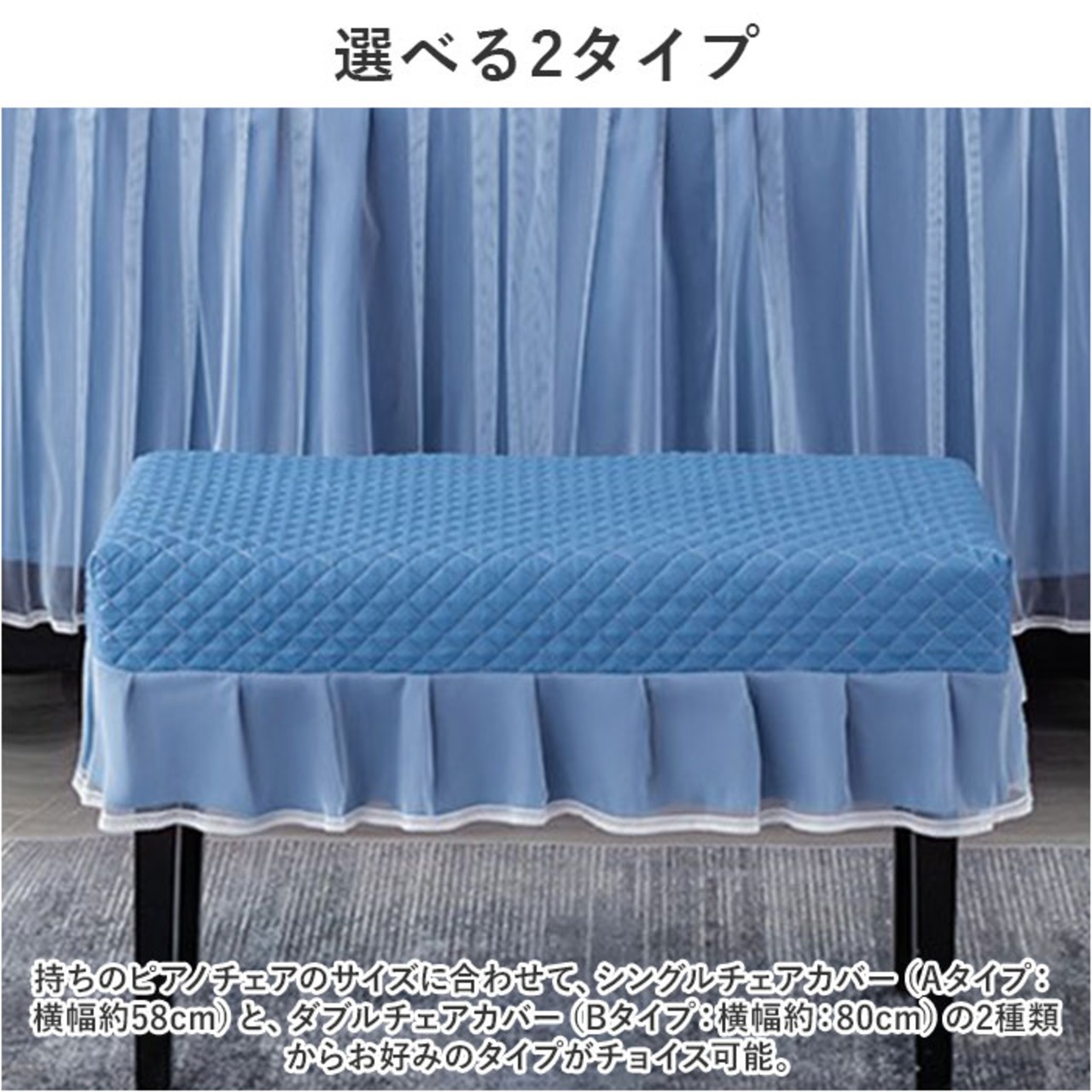 ・お手持ちのピアノチェアのサイズに合わせて、シングルチェアカバー(Aタイプ:横幅約58cm)と、ダブルチェアカバー(Bタイプ:横幅約:78cm)の2種類からお好みのタイプがチョイス可能。
