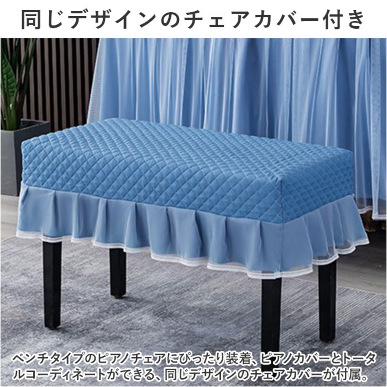 ・ベンチタイプのピアノチェアにぴったり装着、ピアノカバーとトータルコーディネートができる、同じデザインのチェアカバーが付属。