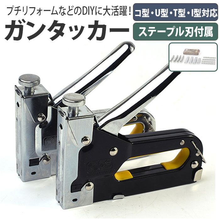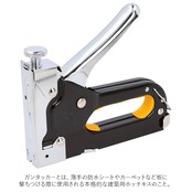 ・ガンタッカーとは、薄手の防水シートやカーペットなど板に撃ちつける際に使用される本格的な建築用ホッチキスのこと。
