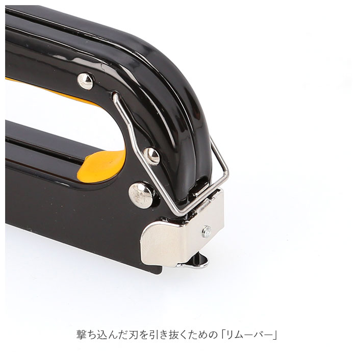 ・そのほか、ステープル刃を打ち込む深さを設定できる「調節ねじ」、撃ち込んだ刃を引き抜くための「リムーバー」、誤作動による事故を防ぐ「ロックバー」など、プロ仕様の機能が充実。