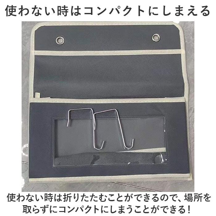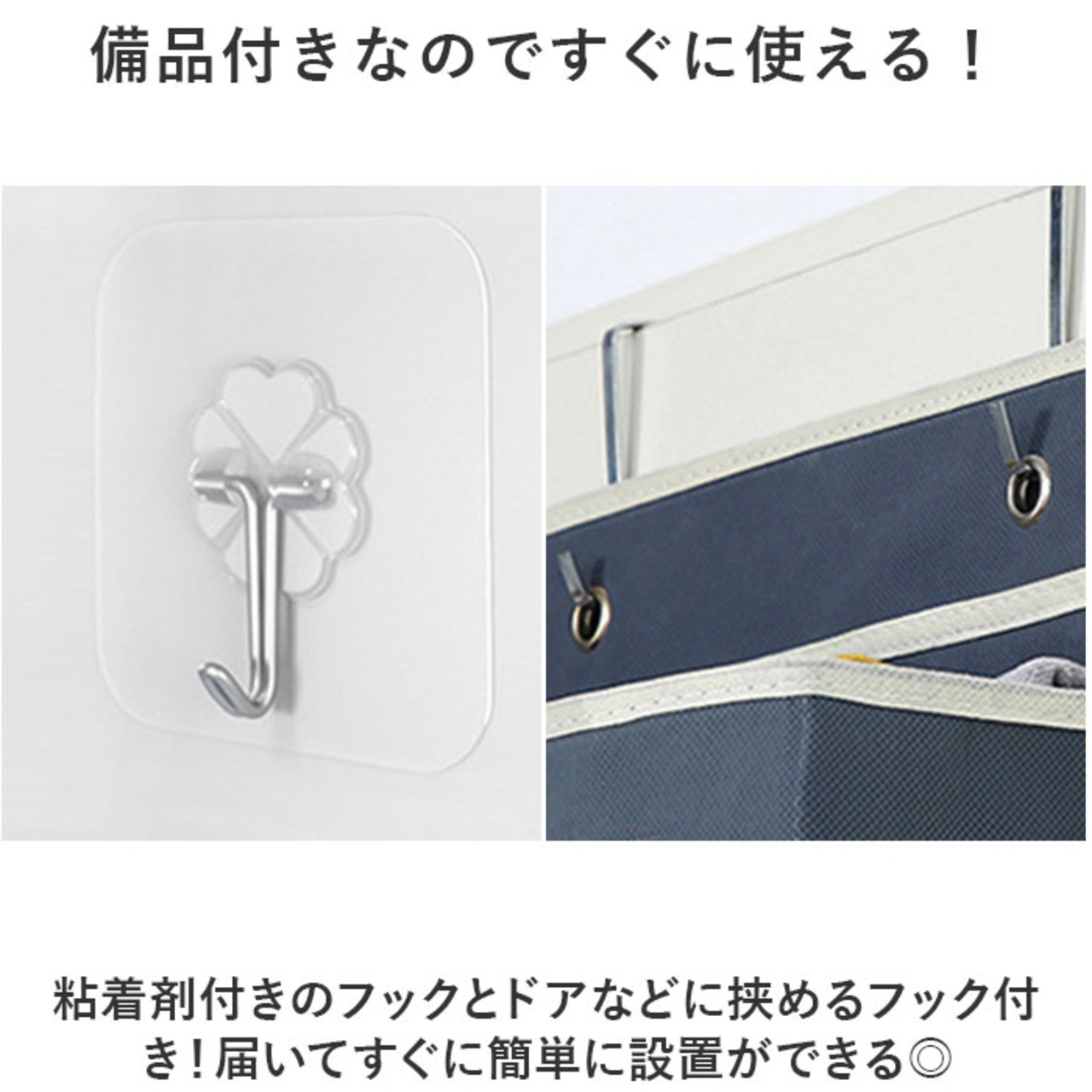 ・粘着剤付きのフックとドアなどに挟めるフック付き!届いてすぐに簡単に設置ができる◎