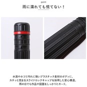 ・水滴やホコリ汚れに強いプラスチック素材のボディに、カチッと閉まるスライドロックキャップを採用した安心構造。雨の日でも作品や図面をしっかりとガード。