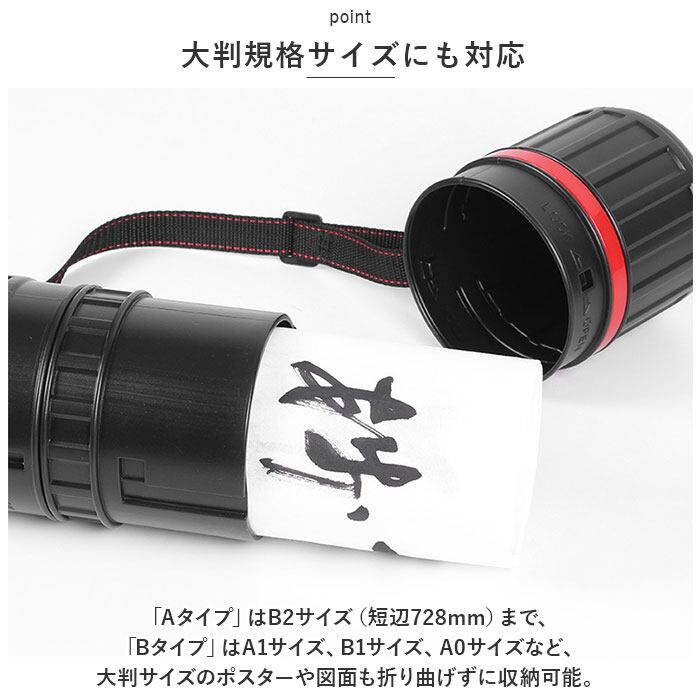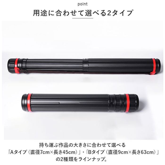 ・持ち運ぶ作品の大きさに合わせて選べる「Aタイプ(直径7cm×長さ45cm)」・「Bタイプ(直径9cm×長さ63cm)」の2種類をラインナップ。
