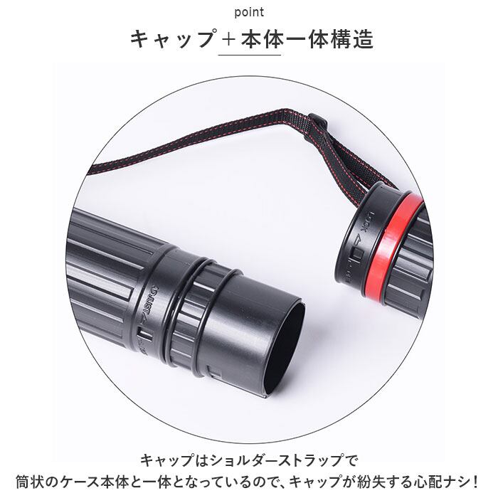 ・キャップはショルダーストラップで筒状のケース本体と一体となっているので、キャップが紛失する心配ナシ!