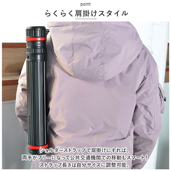 ・ショルダーストラップで肩掛けにすれば、両手がフリーになって公共交通機関での移動もスマート!ストラップ長さは自分サイズに調整可能。