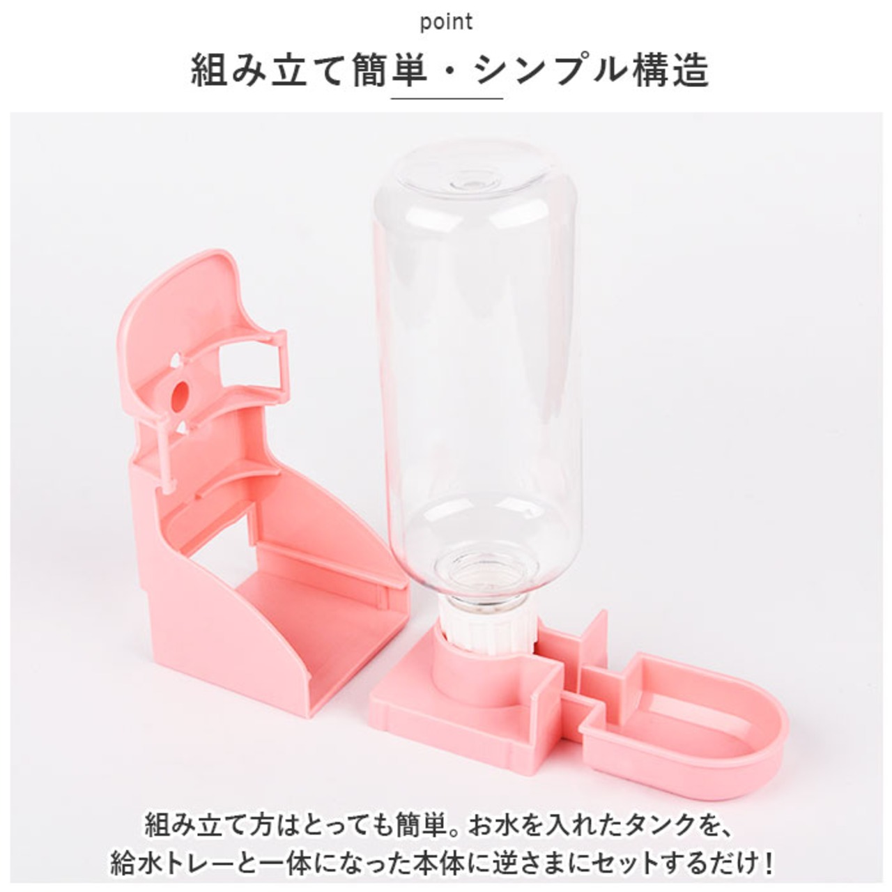 ・組み立て方はとっても簡単。お水を入れたタンクを、給水トレーと一体になった本体に逆さまにセットするだけ!