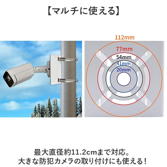 ・最大直径約11.2cmまで対応。大きな防犯カメラの取り付けにも使える!