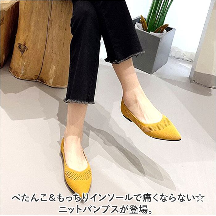・ぺたんこ&もっちりインソールで痛くならない☆ニットパンプスが登場。