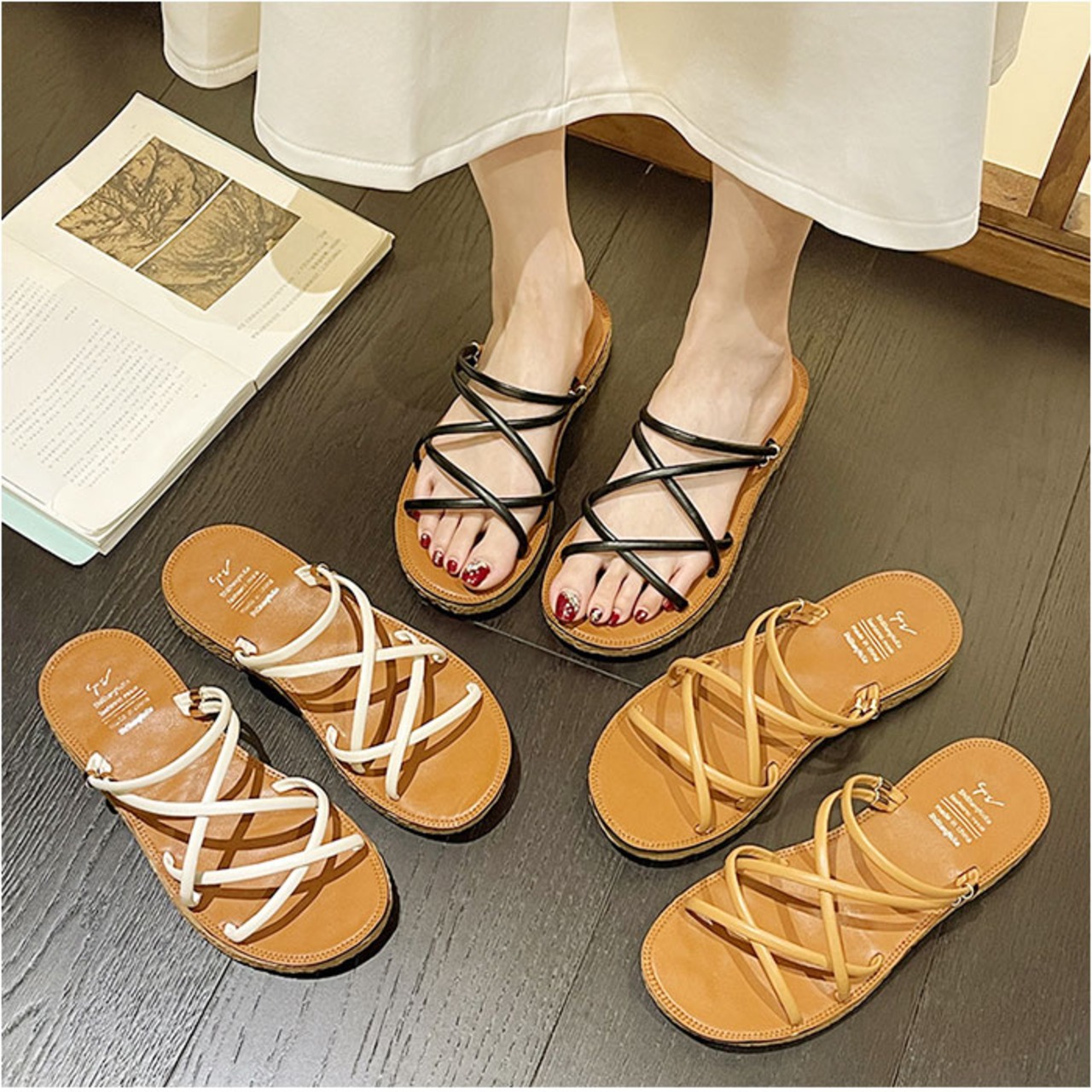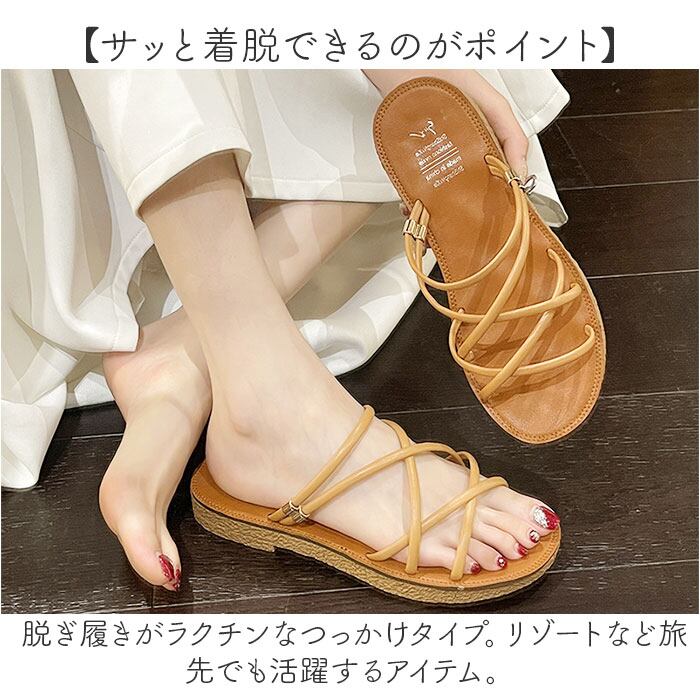 ・脱ぎ履きがラクチンなつっかけタイプ。リゾートなど旅先でも活躍するアイテム。