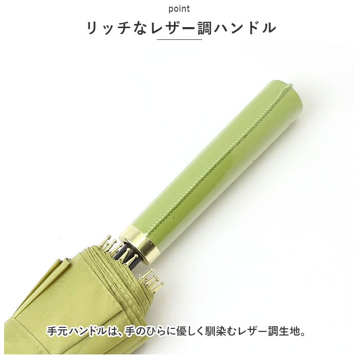 ・手元ハンドルは、手のひらに優しく馴染むレザー調生地。