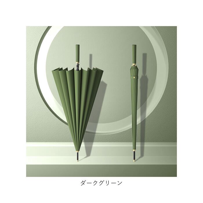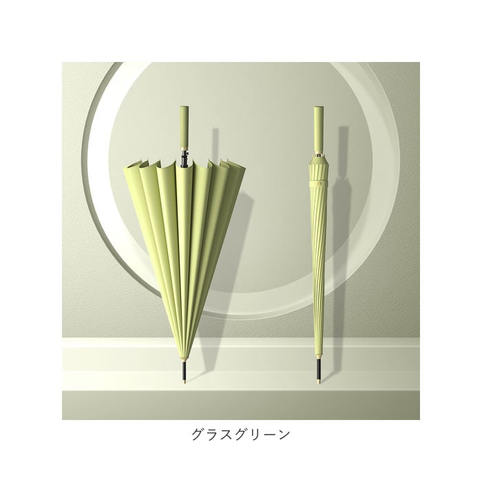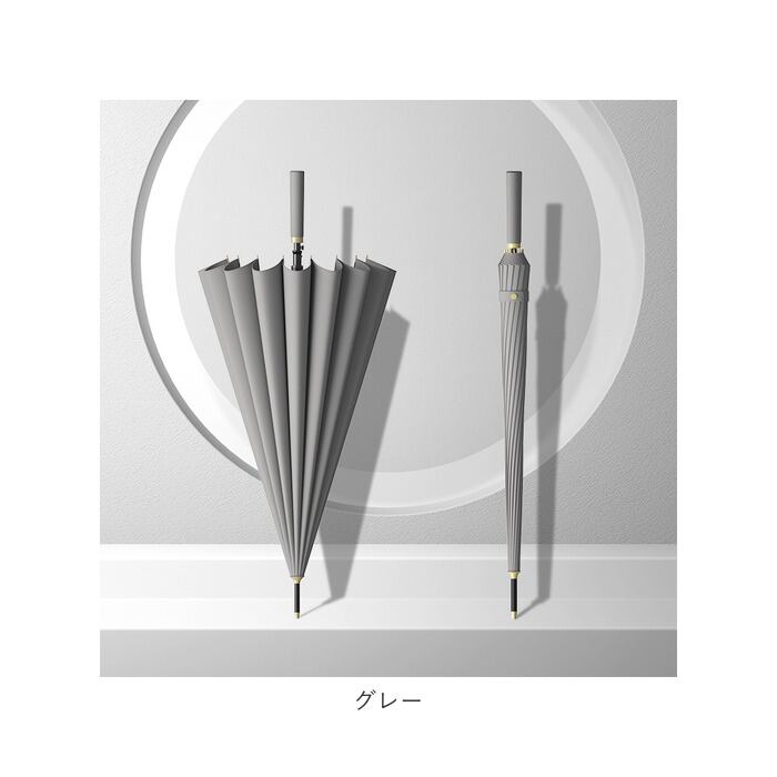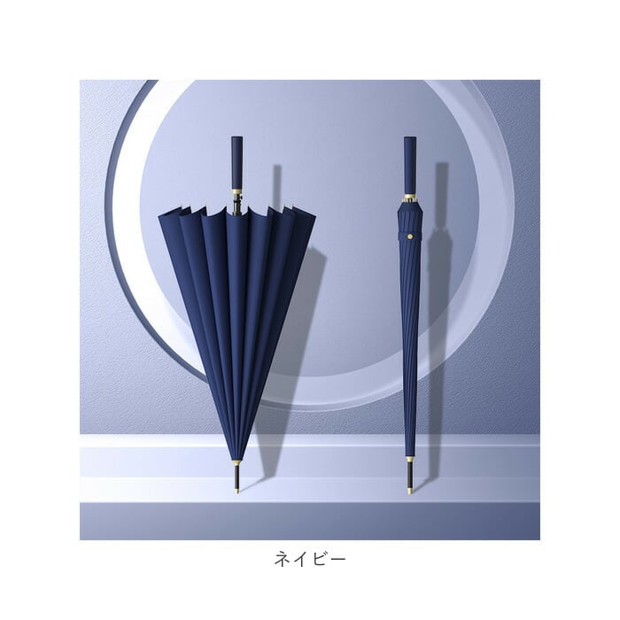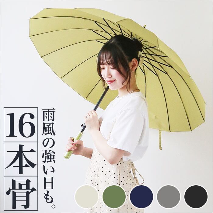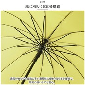 ・通常の傘よりも骨数の多い耐風性に優れた16本骨仕様で、雨風の強い日でも安心。