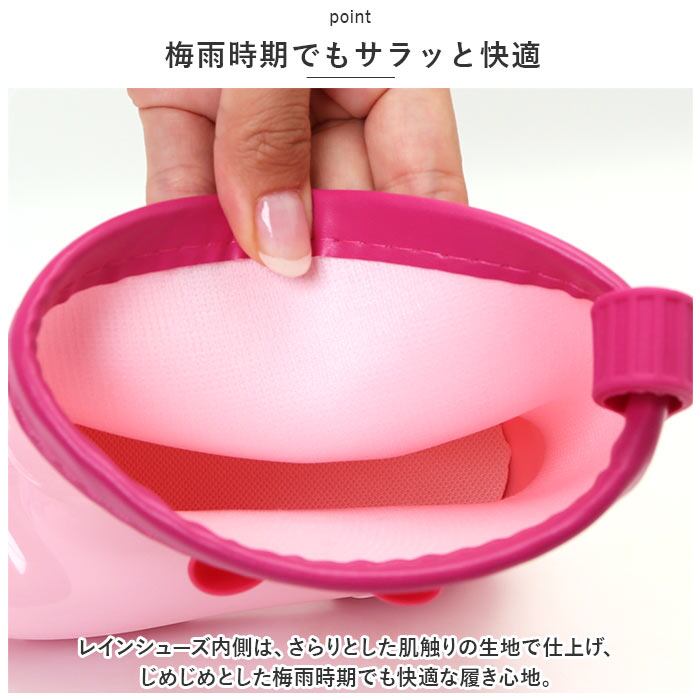 ・レインシューズ内側は、さらりとした肌触りの生地で仕上げ、じめじめとした梅雨時期でも快適な履き心地。