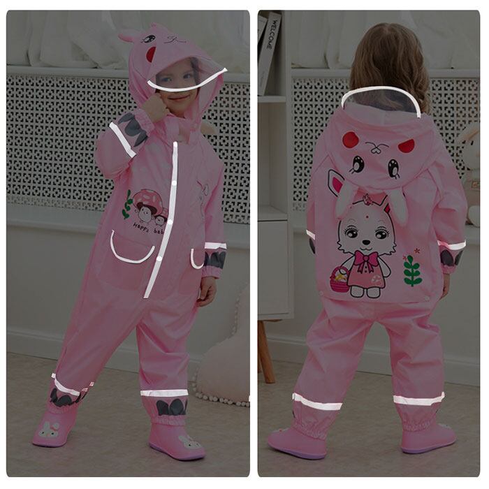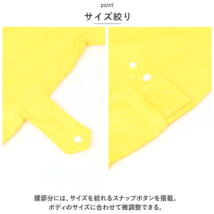 ・頭から足首まですっぽり覆う、カバーオール仕様。しっかり全身をカバーしてくれるから安心。お洋服を雨から守る☆