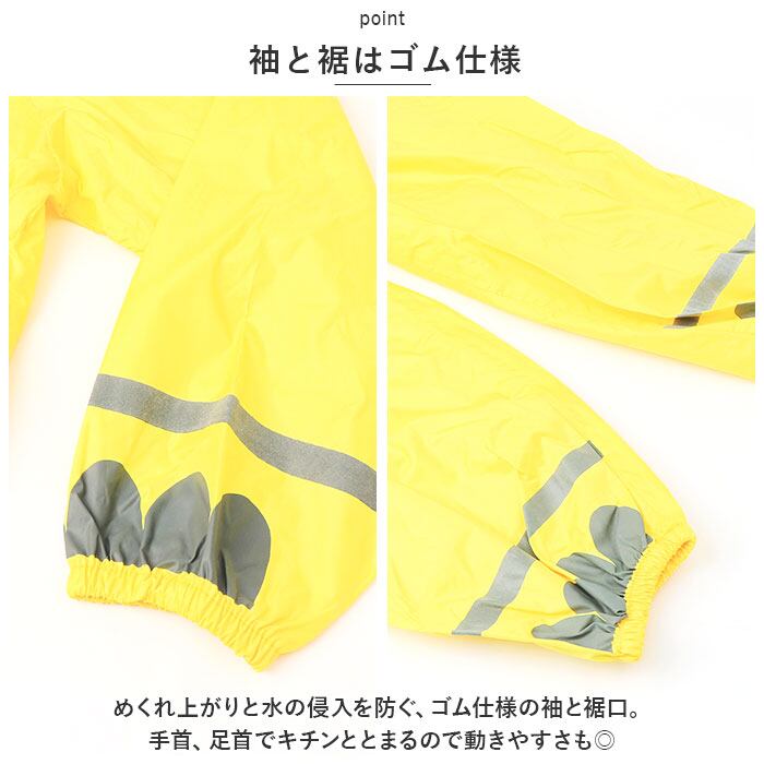 ・めくれ上がりと水の侵入を防ぐ、ゴム仕様の袖と裾口。手首、足首でキチンととまるので動きやすさも◎
