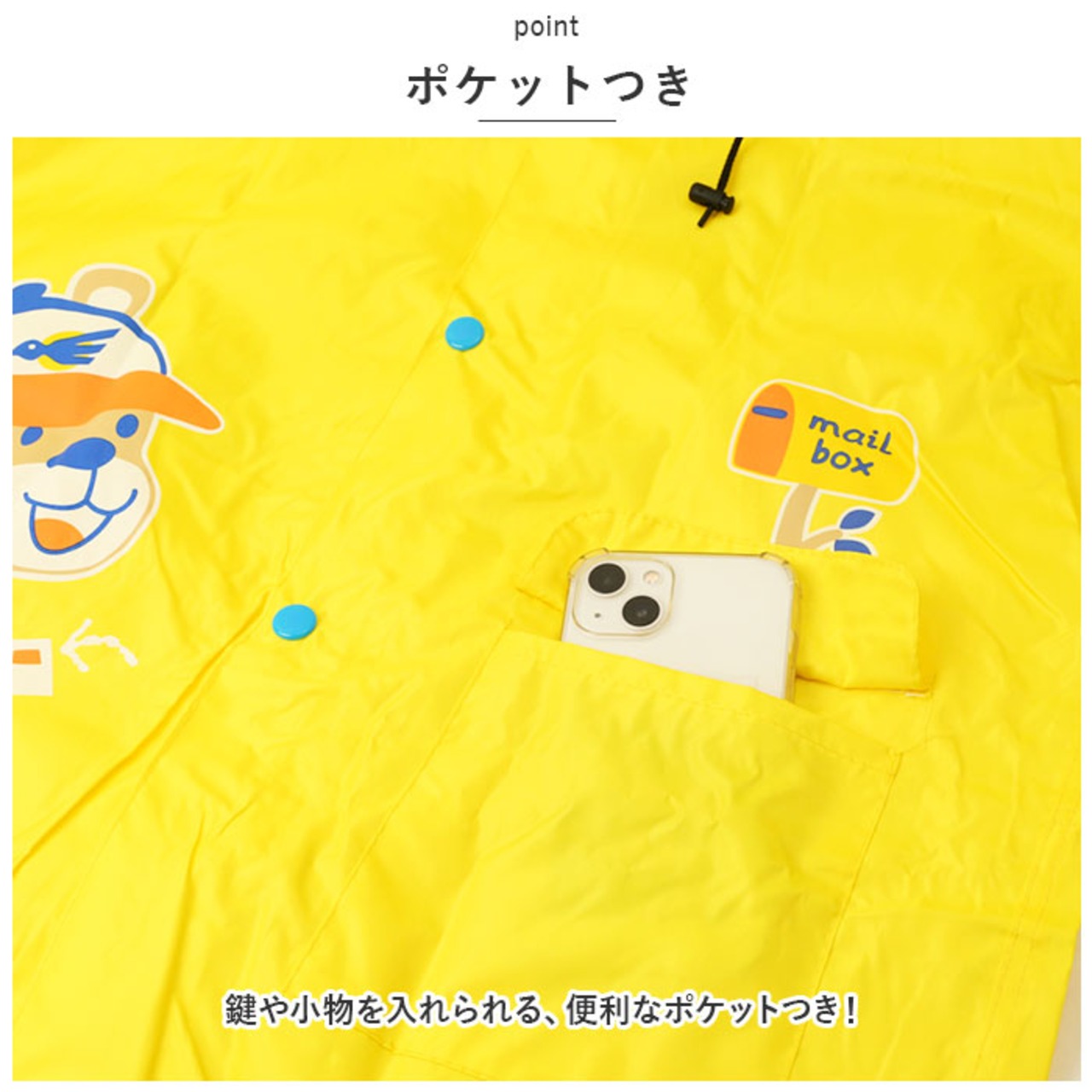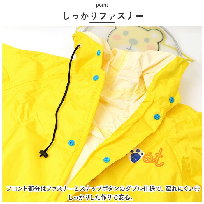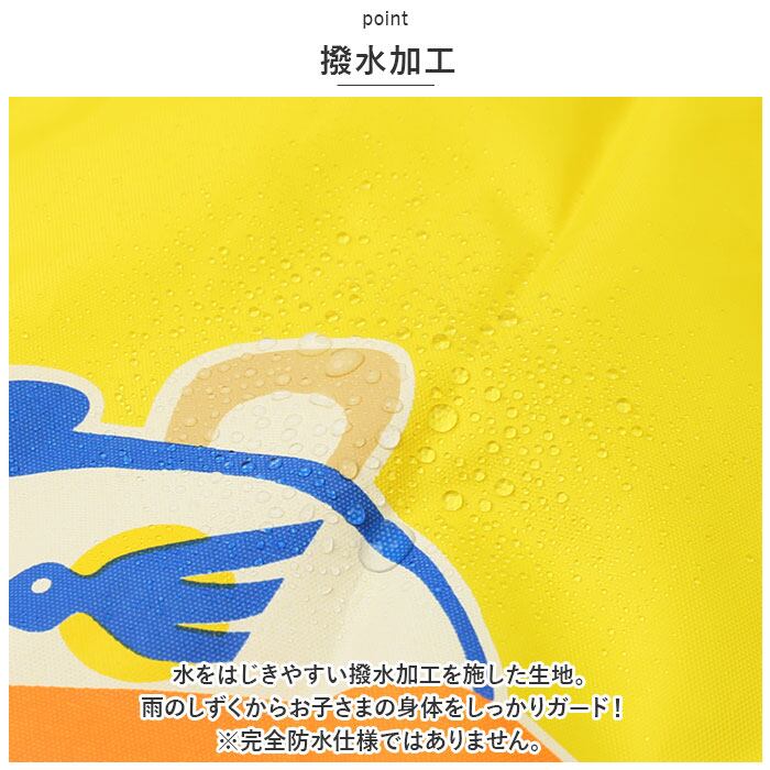 ・水をはじきやすい撥水加工を施した生地。雨のしずくからお子さまの身体をしっかりガード!※完全防水仕様ではありません。