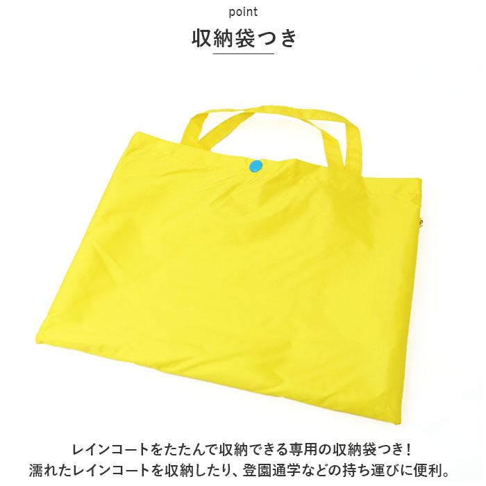 ・レインコートをたたんで収納できる専用の収納袋つき!濡れたレインコートを収納したり、登園通学などの持ち運びに便利。