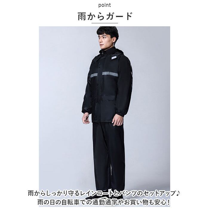 ・雨からしっかり守るレインコートとパンツのセットアップ♪雨の日の自転車での通勤通学やお買い物も安心!