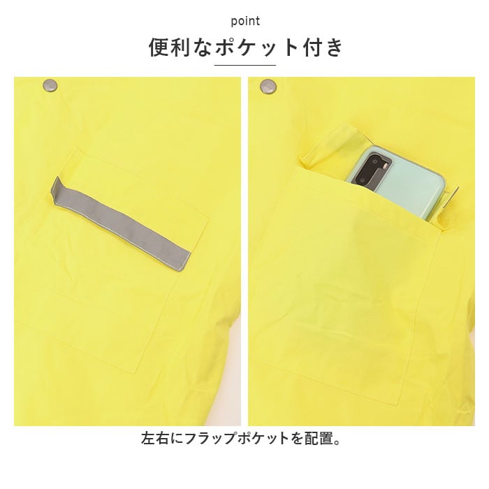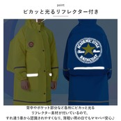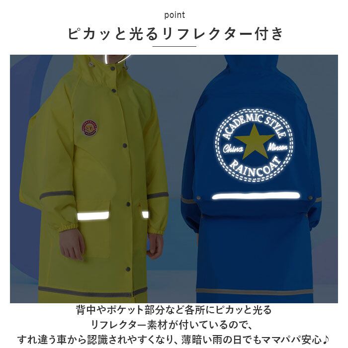 ・背中やポケット部分など各所にピカッと光るリフレクター素材が付いているので、すれ違う車から認識されやすくなり、薄暗い雨の日でもママパパ安心♪