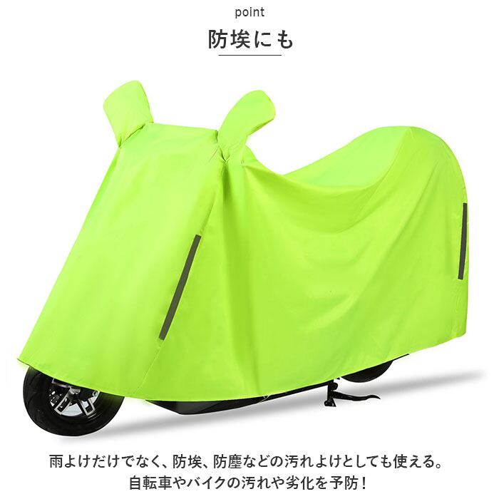 ・雨よけだけでなく、防埃、防塵などの汚れよけとしても使える。自転車やバイクの汚れや劣化を予防!