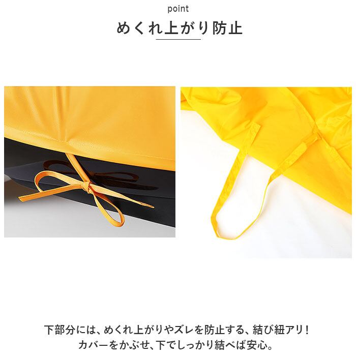 ・下部分には、めくれ上がりやズレを防止する、結び紐アリ!カバーをかぶせ、下でしっかり結べば安心。