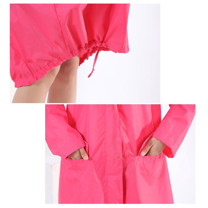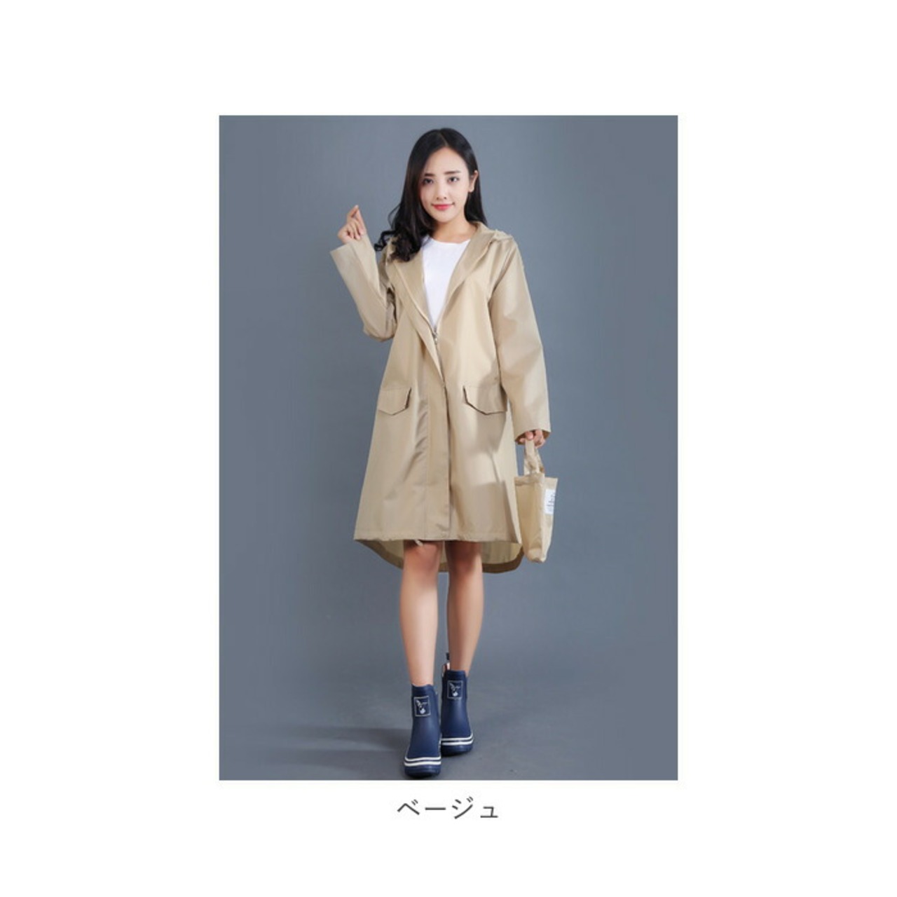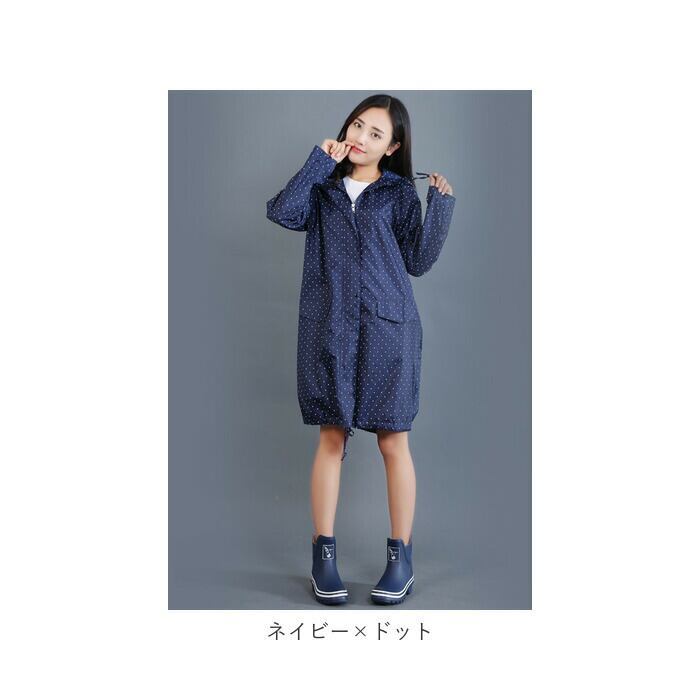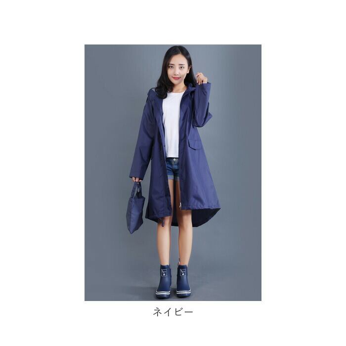 ・膝下までカバーする長めの着丈だから、リュックを背負ったまま上から着ても大丈夫♪レインブーツとのバランスもばっちり。