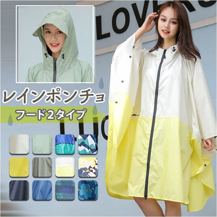 レインポンチョ レインコート 通販 レイン ポンチョ レインウェア カッパ ファスナー フード 軽量 ユニセックス 雨 袋 男女兼用 レディース メンズ おしゃれ かわいい