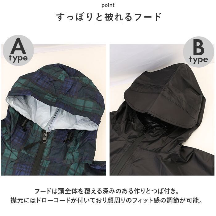 ・フードは頭全体を覆える深みのある作りとつば付き。