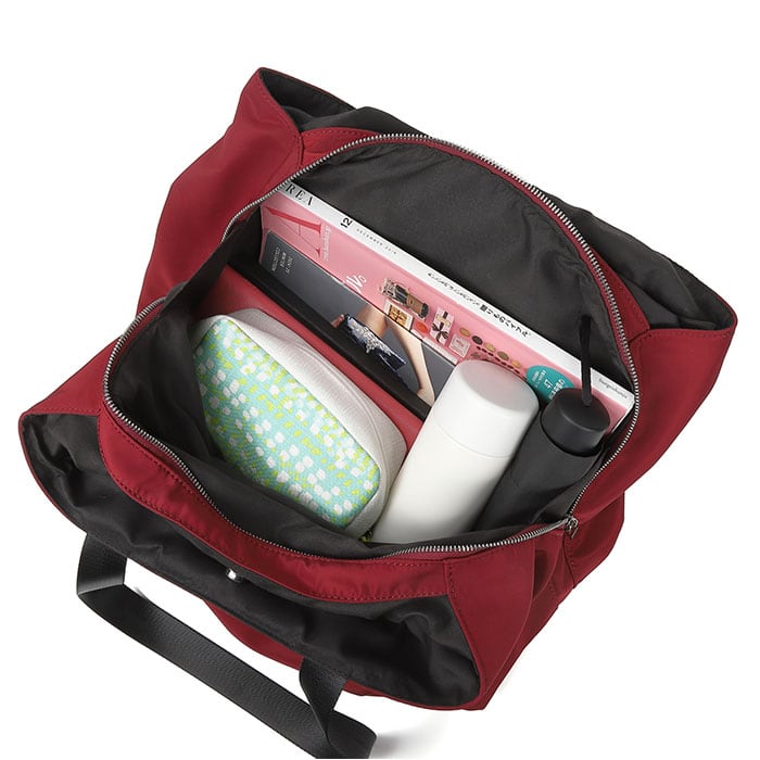 ・A4がぴったり収まり、ポーチやドリンクボトルなどもIN。こぼれ落ちにくいササマチ付き。