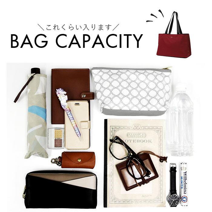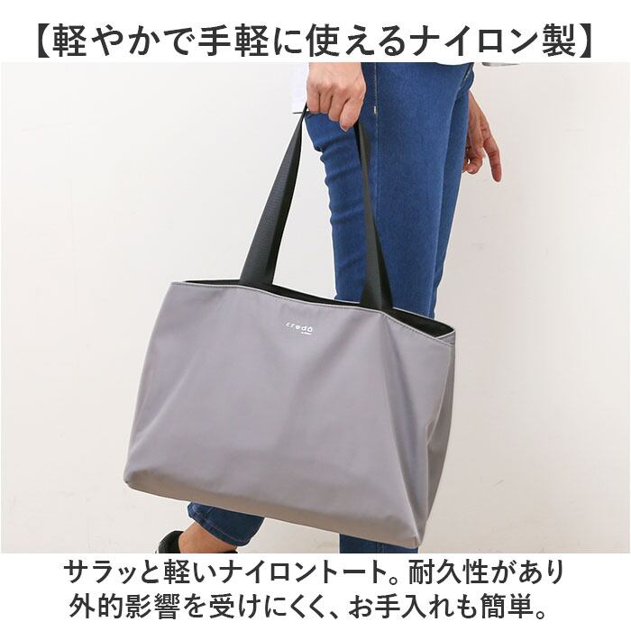 ・サラッと軽いナイロントート。耐久性があり外的影響を受けにくく、お手入れも簡単。