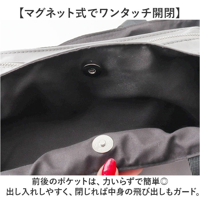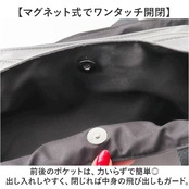 ・前後のポケットは、力いらずで簡単◎出し入れしやすく、閉じれば中身の飛び出しもガード。