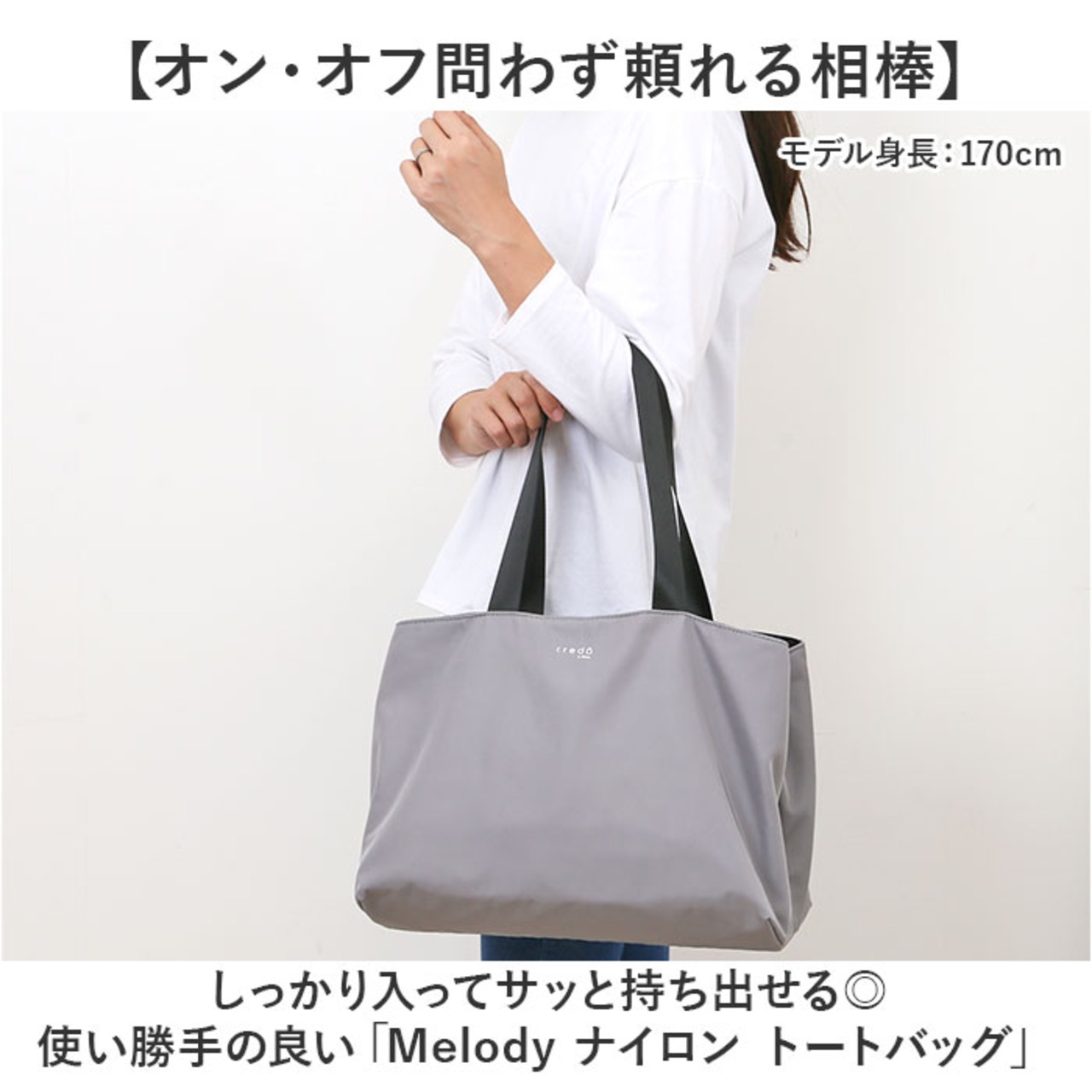・しっかり入ってサッと持ち出せる◎使い勝手の良い「Melody ナイロン トートバッグ」。