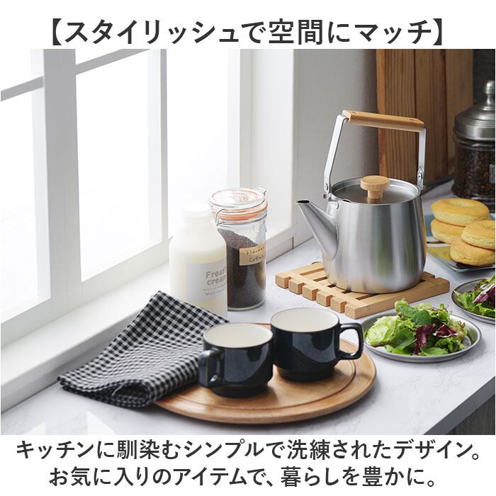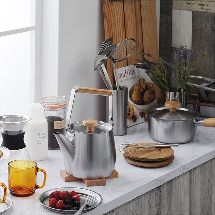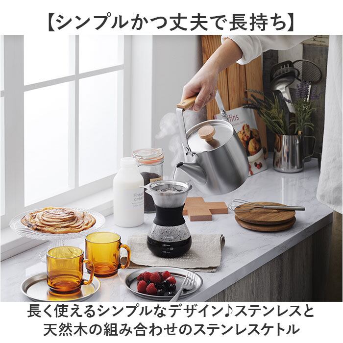 ・長く使えるシンプルなデザイン♪ステンレスと天然木の組み合わせのステンレスケトル