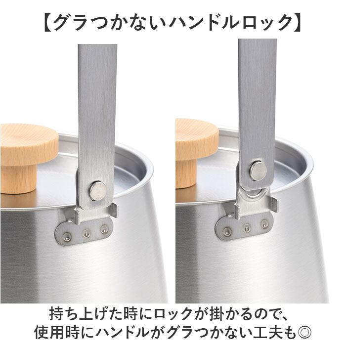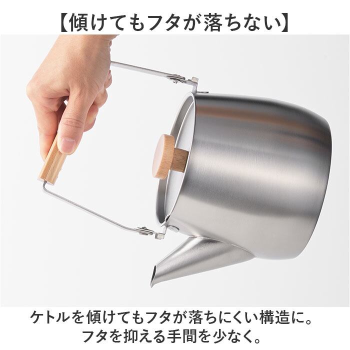 ・ケトルを傾けてもフタが落ちにくい構造に。フタを抑える手間を少なく。