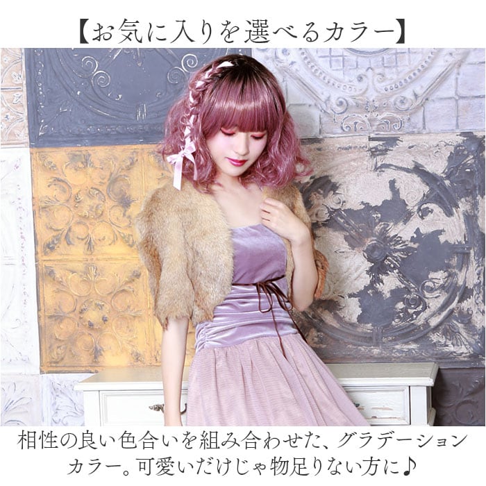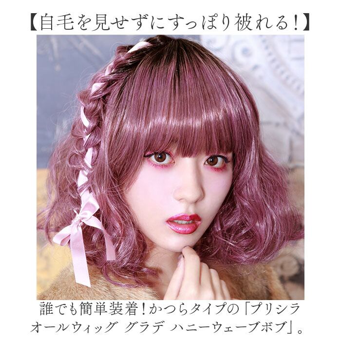 ・誰でも簡単装着!かつらタイプの「プリシラオールウィッグ グラデ ハニーウェーブボブ」。