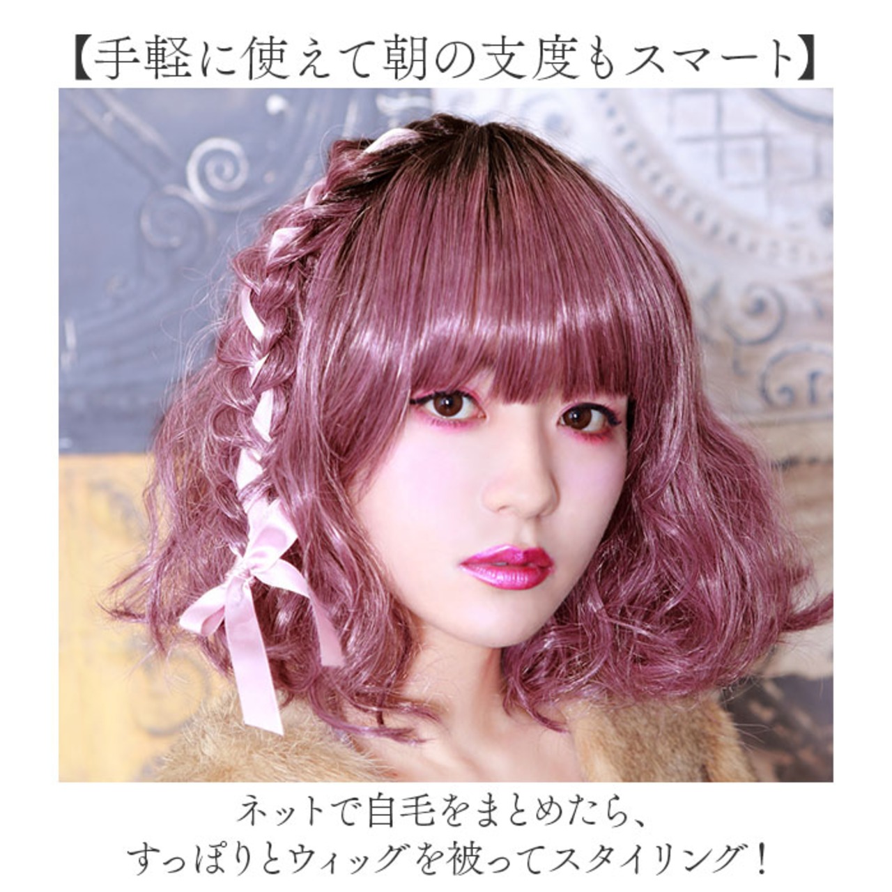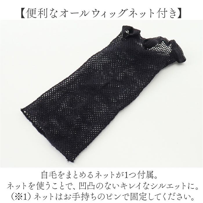 ・自毛をまとめるネットが1つ付属。ネットを使うことで、凹凸のないキレイなシルエットに。
